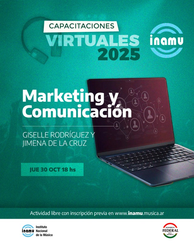 El Instituto Nacional de la Música (INAMU) y la Asamblea Federal de la Música anuncian la primera segunda del Ciclo de Capacitaciones y Talleres Virtuales 2025, que se está llevando a cabo hasta el mes de diciembre. Este espacio de formación está especialmente diseñado para fortalecer el desarrollo de proyectos musicales en todas sus instancias.